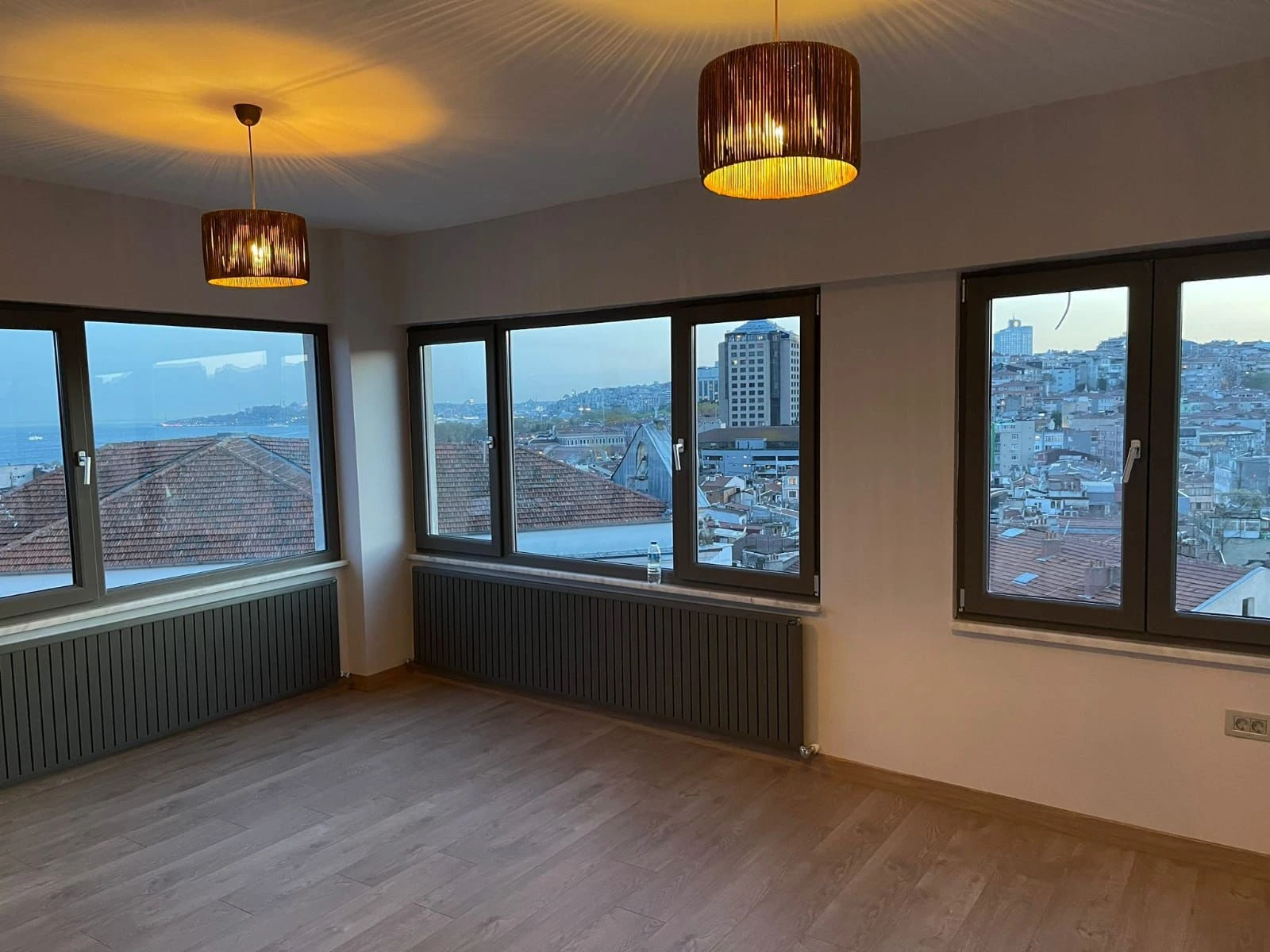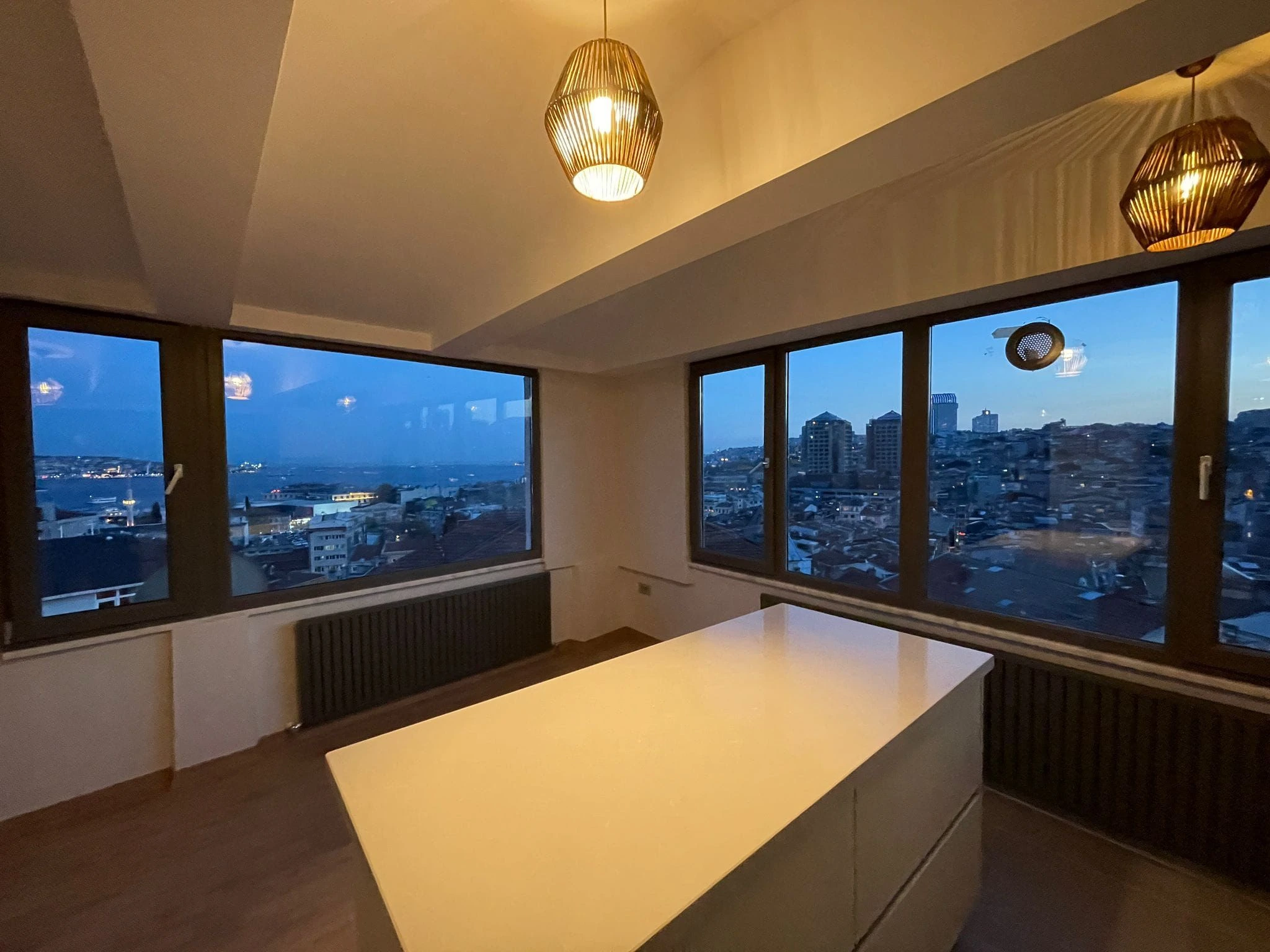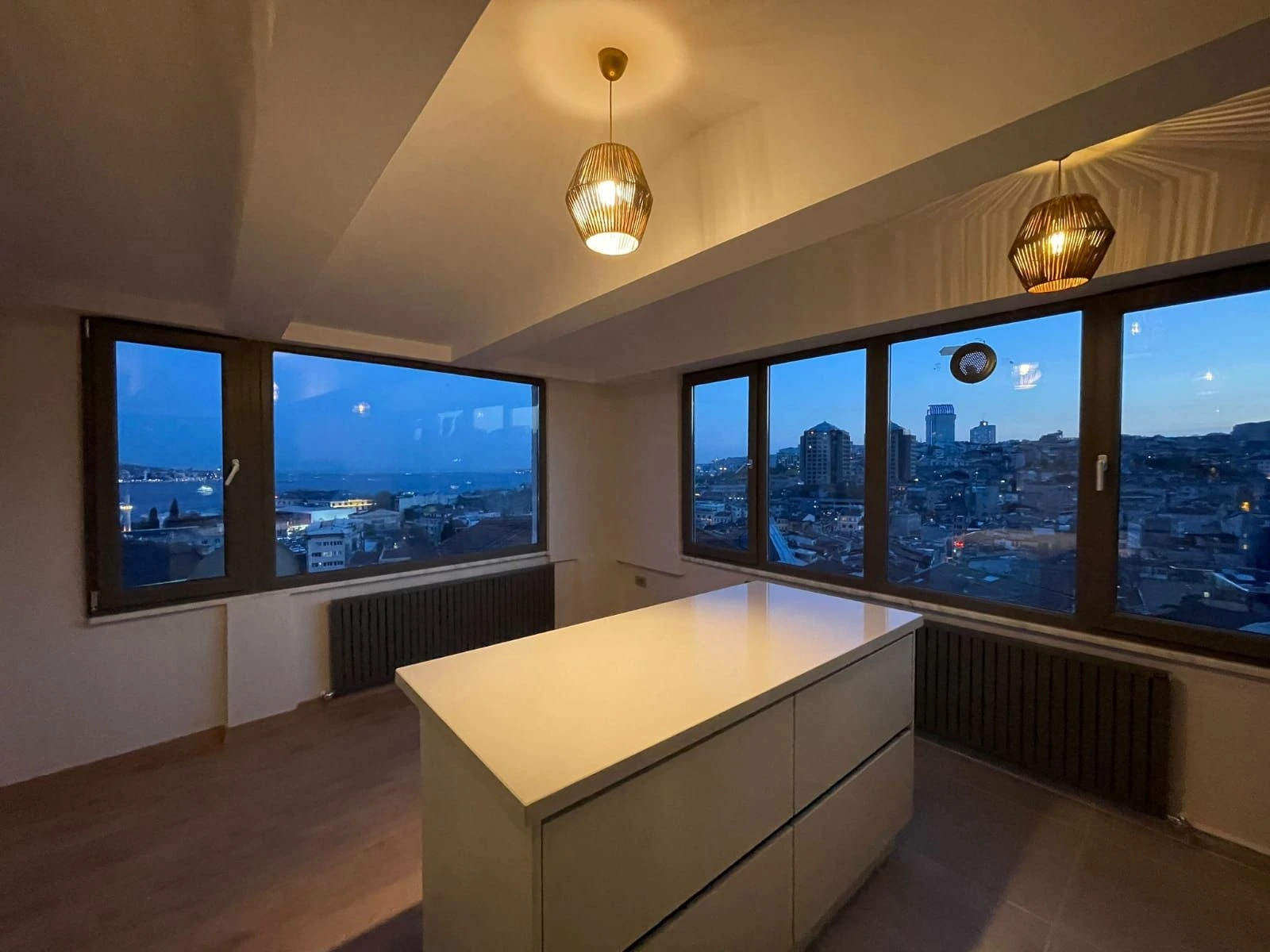 The apartment has three floors and two bathrooms, with panoramic views of the Bosphorus