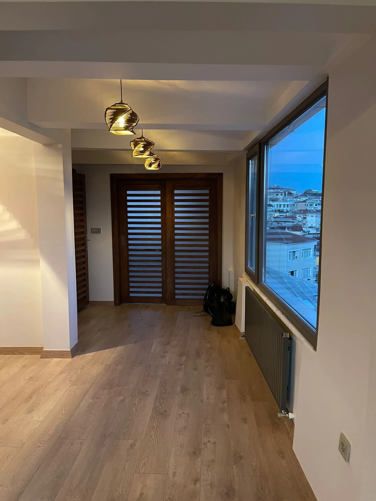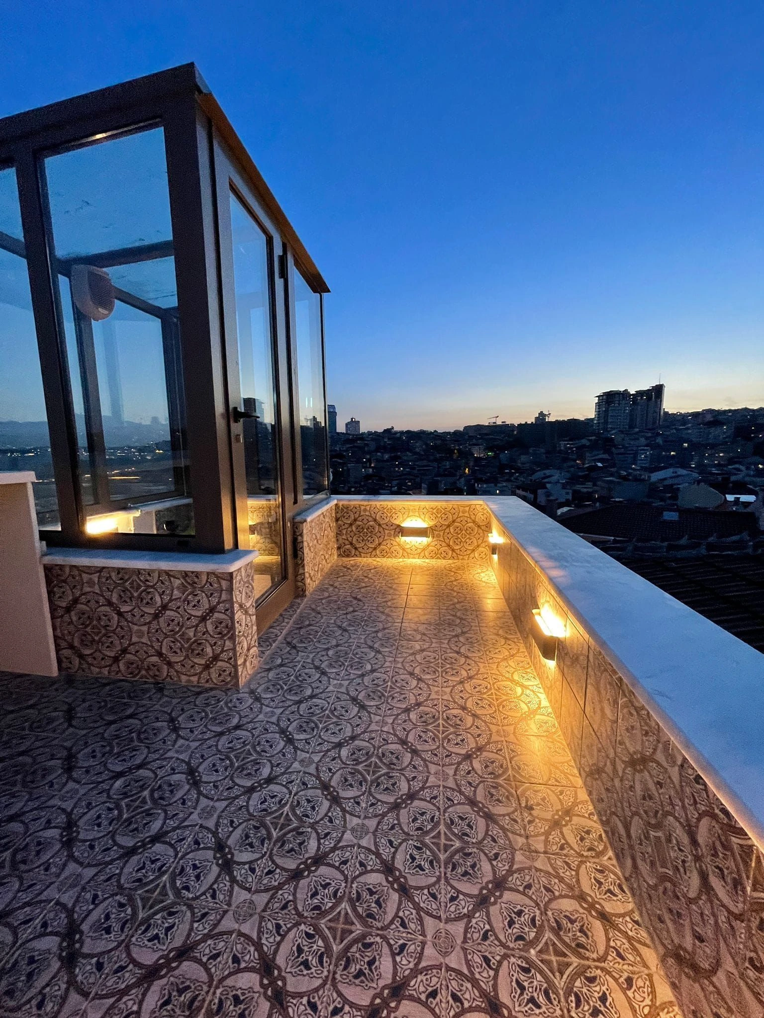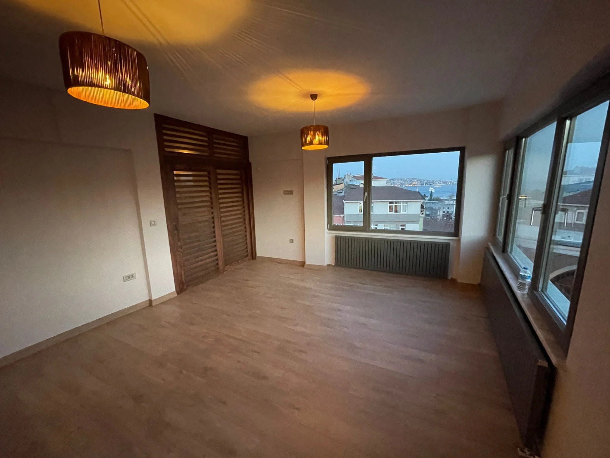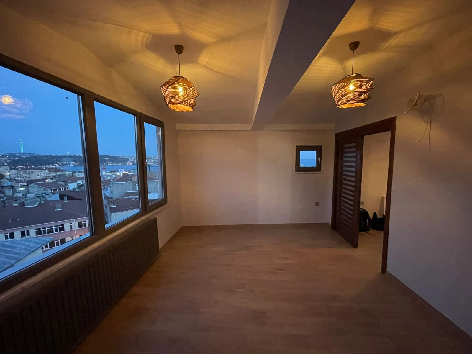 The apartment has three floors and two bathrooms, with panoramic views of the Bosphorus