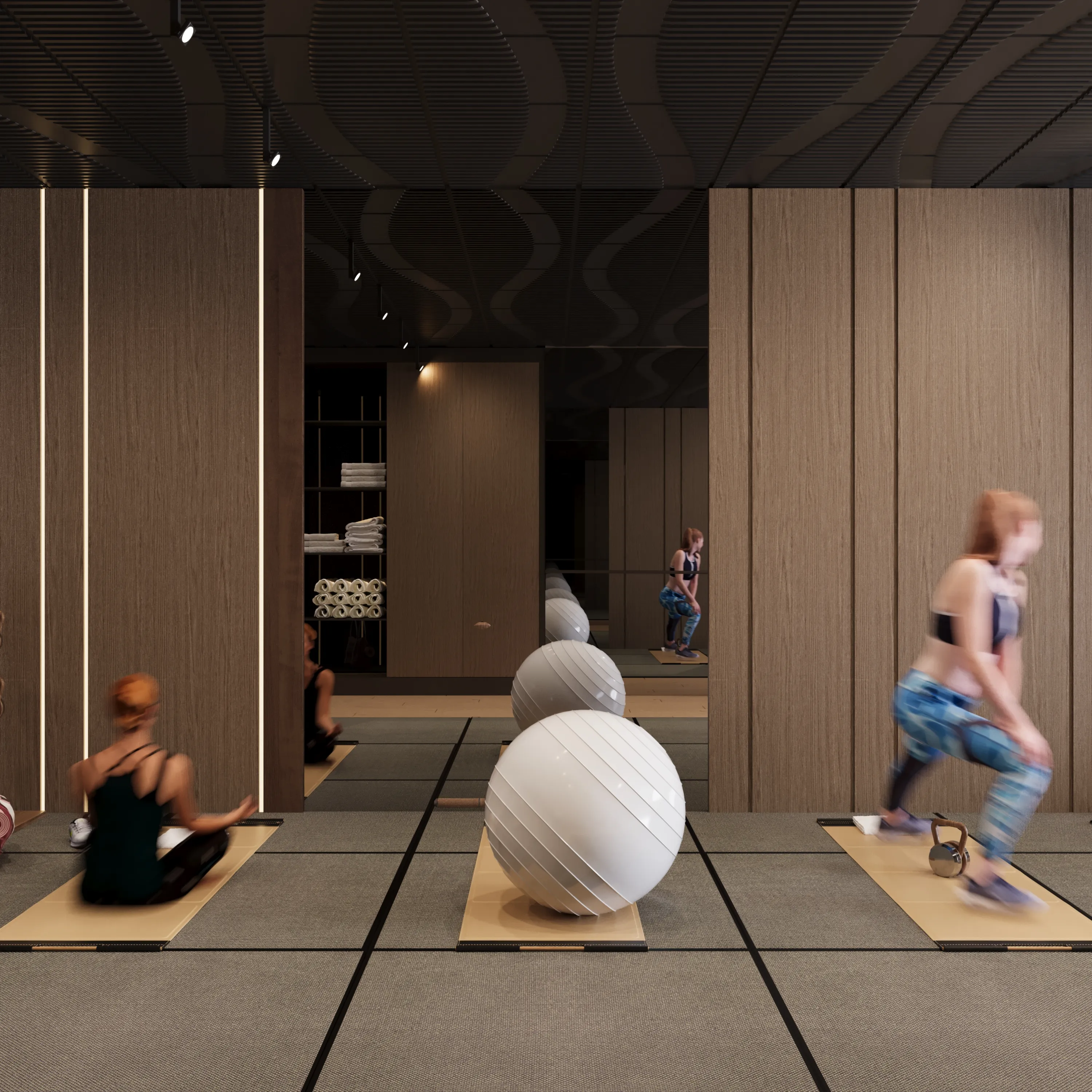Fitness Salonu: Kardiyo, ağırlık ve pilates alanlarıyla donatılmış profesyonel bir spor alanı.